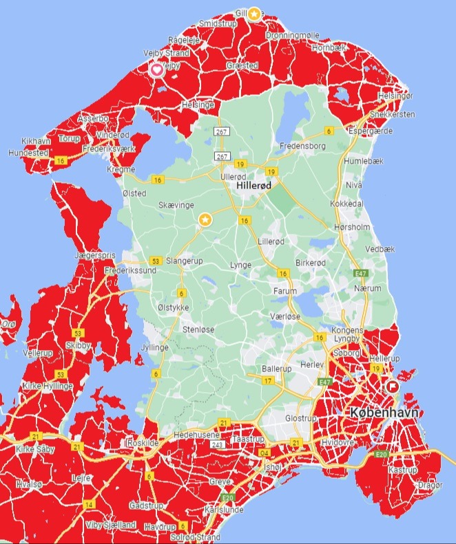 Det område som er rødt dækker vi ikke, men det grønne dækker vi :)